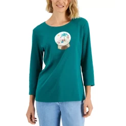 Best Pirce ๐ Karen Scott Plus Size Puppy Love 3/4-Sleeve Top, Created For Macy’s Deep Black ๐