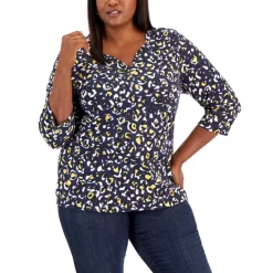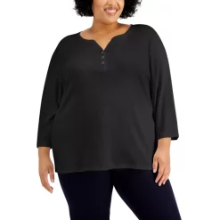 Best Pirce ๐ฏ Karen Scott Plus Size Plaid Henley Top, Created For Macy’s Steel Rose ๐