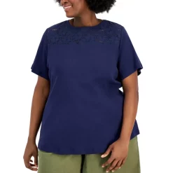 Top 10 ๐ Karen Scott Plus Size Cotton Crochet-Trimmed Top, Created For Macy’s Boca Blush โค๏ธ