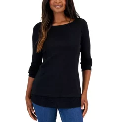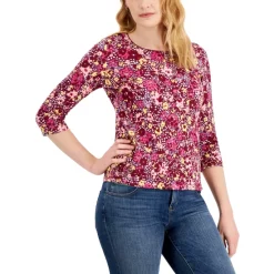 Best deal ๐ Karen Scott Petite Cotton Scoop-Neck Top, Created For Macy’s New Red Amore โญ