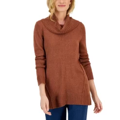 New ๐ Karen Scott ๐ฉ Women’s Turbo Box-Stitch Sweater, Created For Macy’s Java Brown Marl ๐
