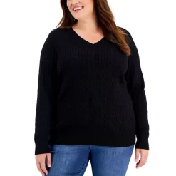 Budget ๐ Karen Scott Plus Size Cable-Knit V-Neck Sweater, Created For Macy’s Soft Pink ๐