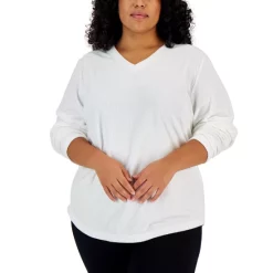 Promo ๐ Karen Scott Plus Size V-Neck Micro Fleece Top, Created For Macy’s Winter White ๐ฏ