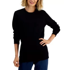 Promo ๐ฅฐ Karen Scott Petite 3/4 Sleeve Cotton Scoop-Neck Top, Created For Macy’s Spruce Night ๐งจ