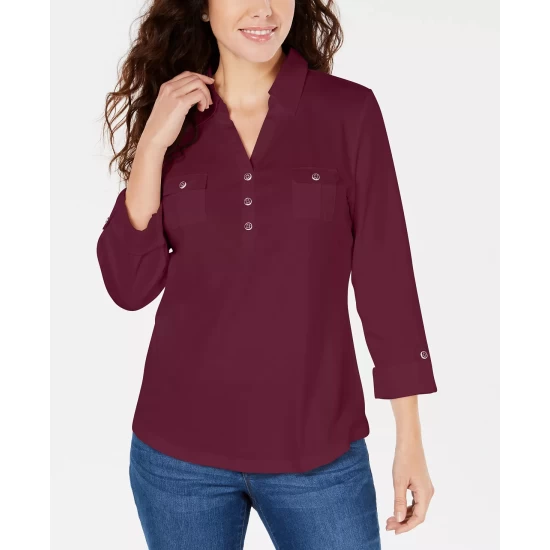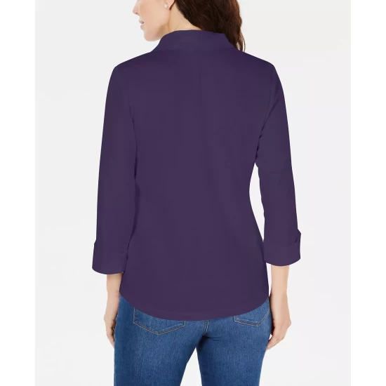 Button details put a fresh spin on this Karen Scott shirt, a comfy cotton top with an easy feel.