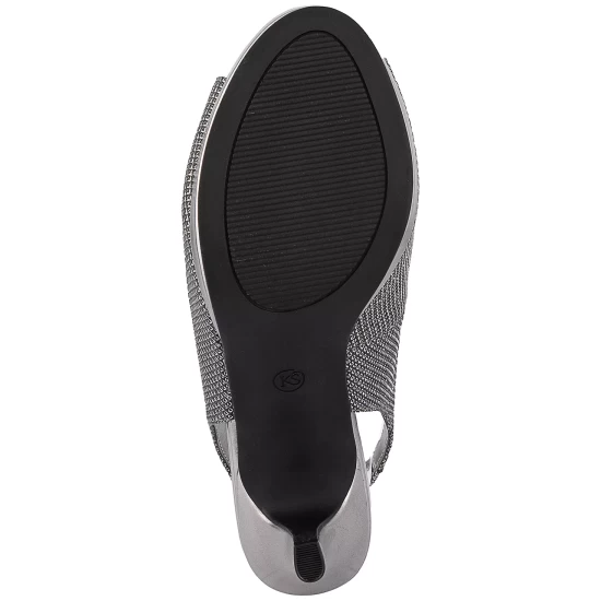 Shimmering metallics and a rhinestone brooch bring sparkling elegance to dressy looks in these Breena platform pumps from Karen Scott.