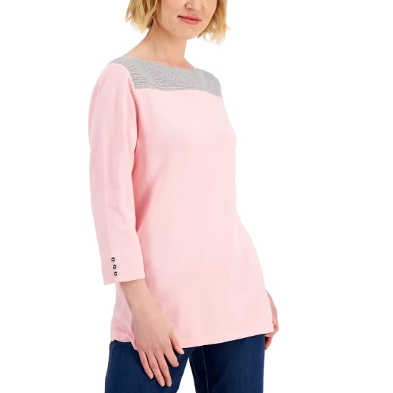Colorblocked at the yoke, this boat-neck top by Karen Scott is an updated wardrobe essential.