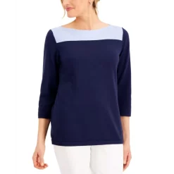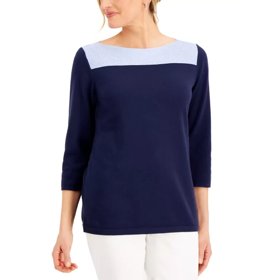 Colorblocked at the yoke, this boat-neck top by Karen Scott is an updated wardrobe essential.