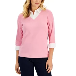 Karen Scott takes the guessing out of layering with this top; crafted with cool comfortable cotton, this 3/4-sleeve top is sure to please.