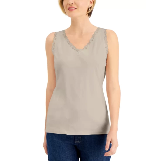 Turn on the charm with this Karen Scott tank top, a cool feel in all-cotton accented with scalloped lace.