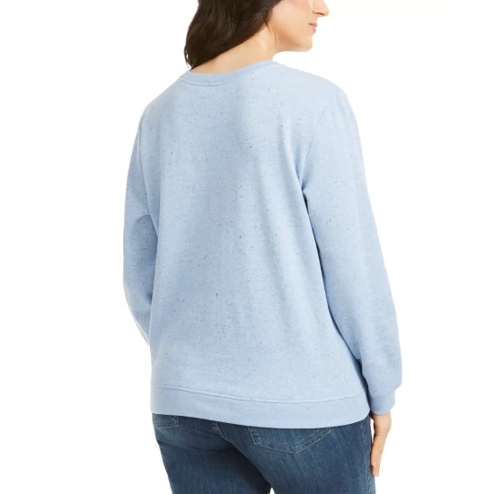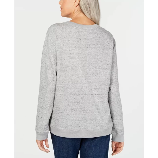 Cozy and comfy in heathered fleece, this Karen Scott sweatshirt is a casual-day essential in a crewneck design.