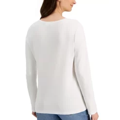 Keep it simple with Karen Scott’s long-sleeve T-shirt. This all-cotton style gets everything right, from the scoop neckline to the relaxed fit.