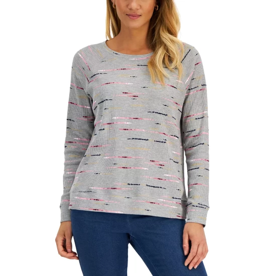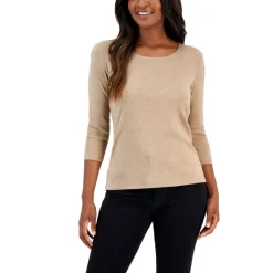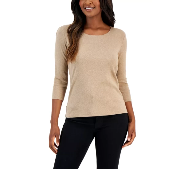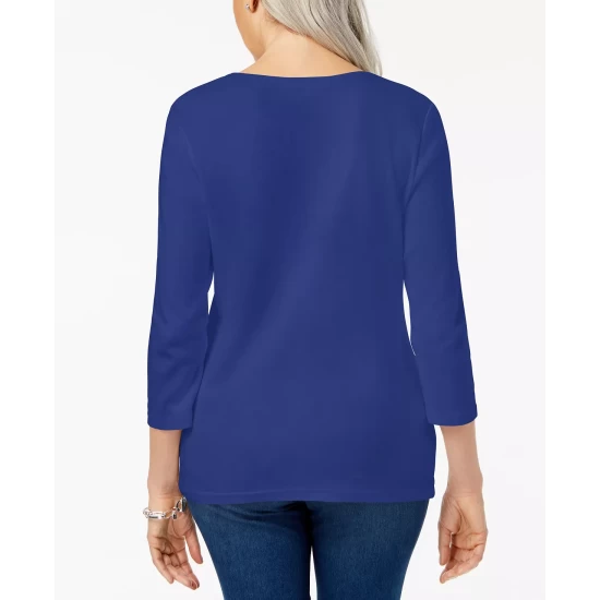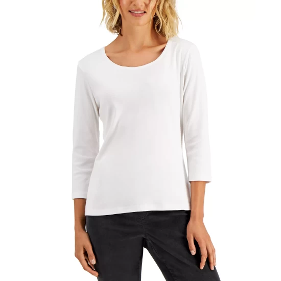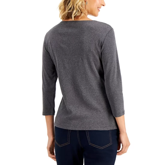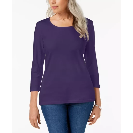 Cut in a classic silhouette, Karen Scott’s petite cotton top provides endless styling options with a scoop neckline and three-quarter-length sleeves.