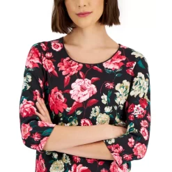 Brighten up every look with the moody blooms featured on this scoop-neck top by Karen Scott.