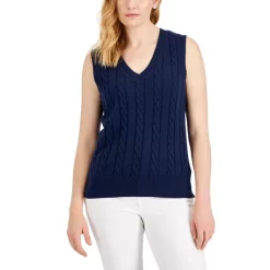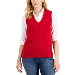 Super versatile, this classic cotton petite sweater vest from Karen Scott is stylish on its own or as a layer.