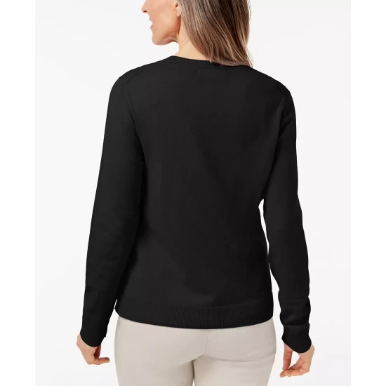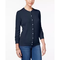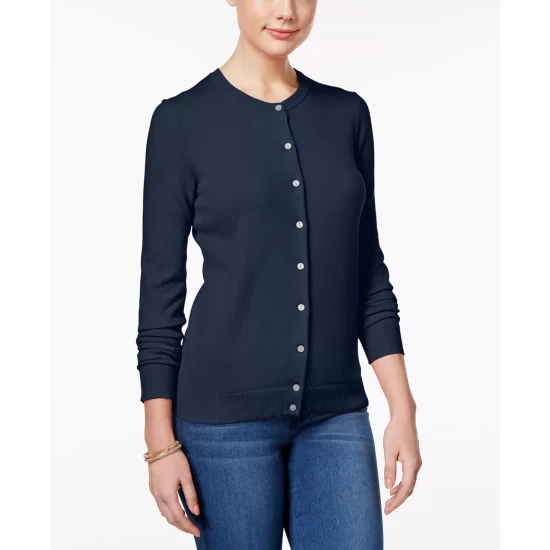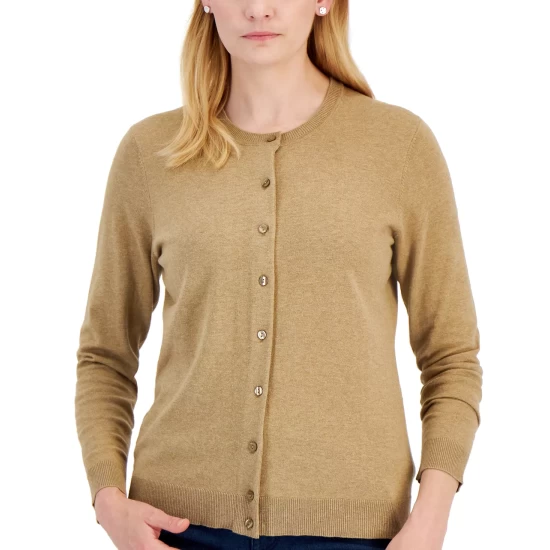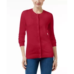 Karen Scott captures a casual wardrobe favorite with this layer-ready button-front petite cardigan in a versatile solid hue.