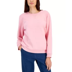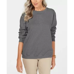Soft and cozy in fleece, this pullover crewneck top from Karen Scott is comfy and stylish with jeans or leggings.