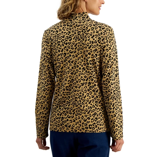 Get spotted in this wildly fun top from Karen Scott, a petite mock-turtleneck pick designed with a leopard print throughout every inch.