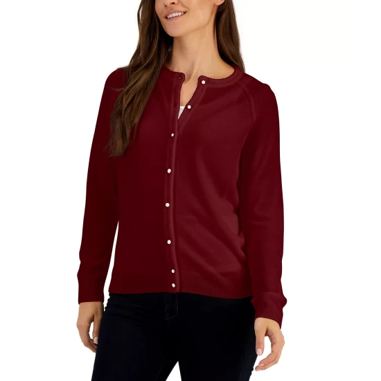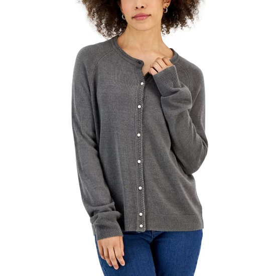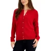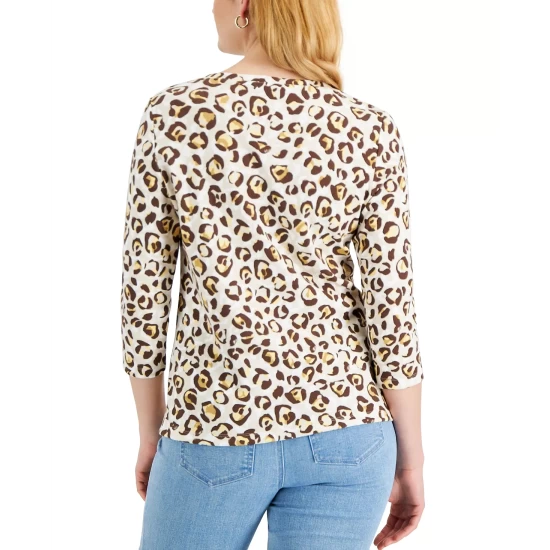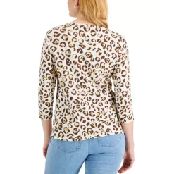 Wildly stylish, this petite henley-neck top from Karen Scott features a relaxed silhouette and a fun animal print.