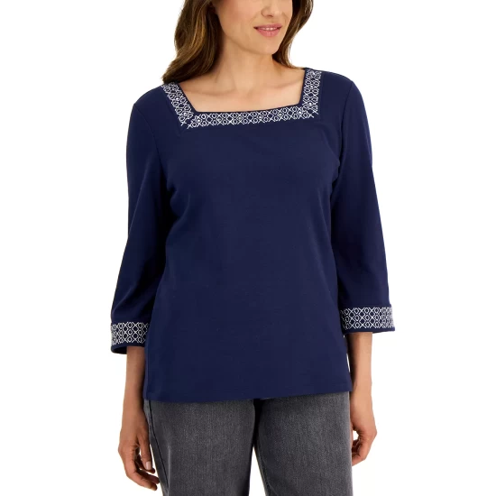 Best Pirce 💯 Karen Scott 👩 Women’s Cotton Marl Zip Sweater, Created For Macy’s New Navy Marl ⭐
