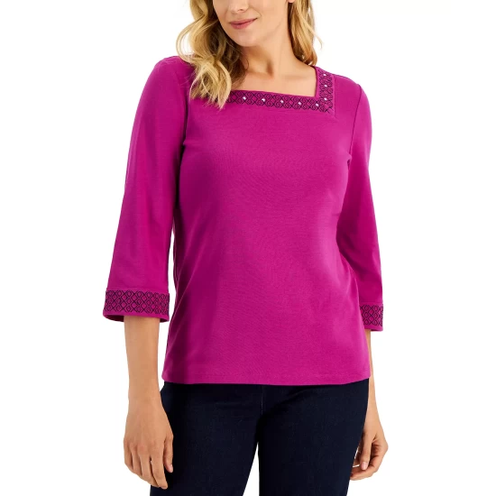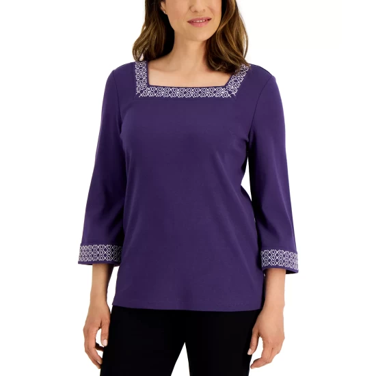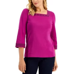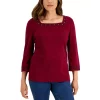 Buy 🔔 Karen Scott 👩 Women’s Chloe Space-Dyed Waffled 👕 Shirt, Created For Macy’s Winter White 🌟