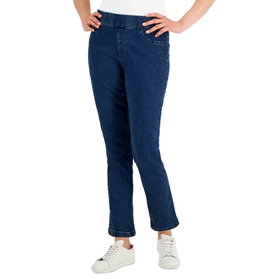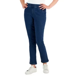 Refresh your style this season with these petite denim pants from Karen Scott, featuring an easy pull-on design.