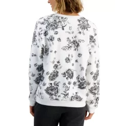 A garden of flowers is printed throughout this petite fleece sweatshirt from Karen Scott.