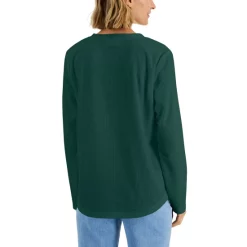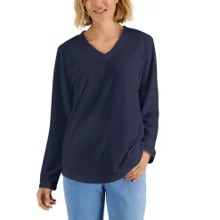 A relaxed addition to your casual closet, this petite V-neck top from Karen Scott is designed in soft microfleece.