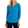 Cozy up to Karen Scott’s plus size chenille sweater designed with classic cable-knit patterns throughout.
