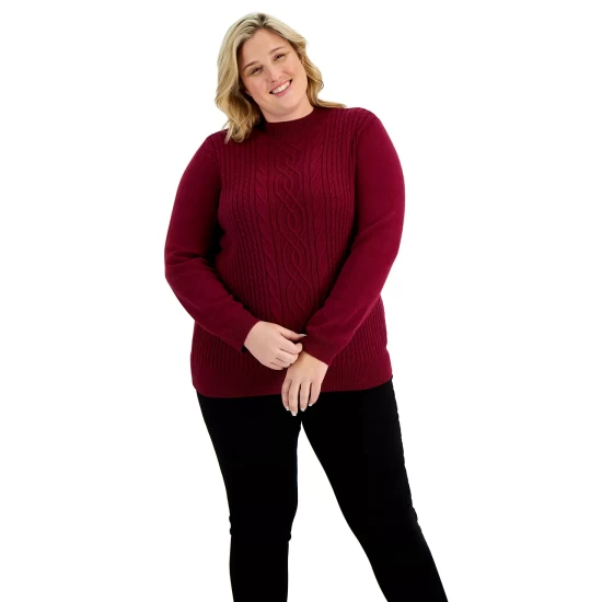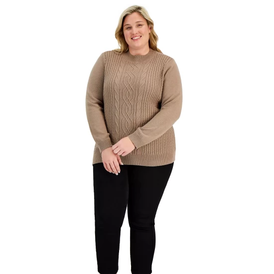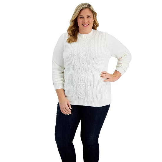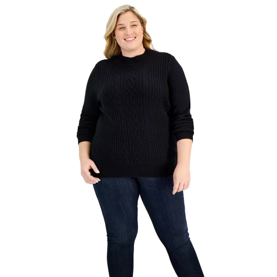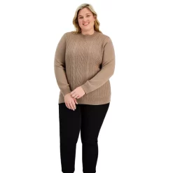 An allover cable knit lend a luxe look to this plus size sweater from Karen Scott.