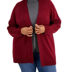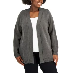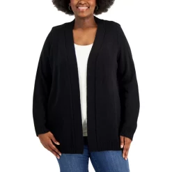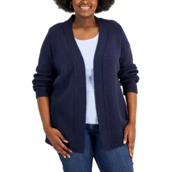 Add the perfect finishing touch to your outfit with this cozy cardigan from Karen Scott, a plus size design finished with an open front for added versatility.