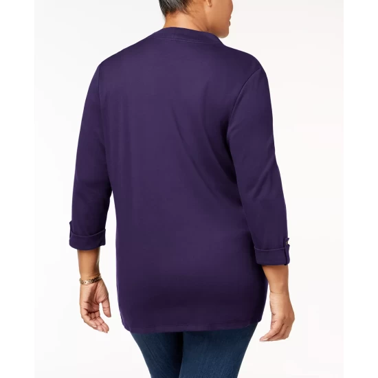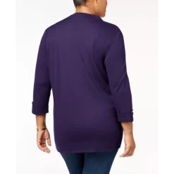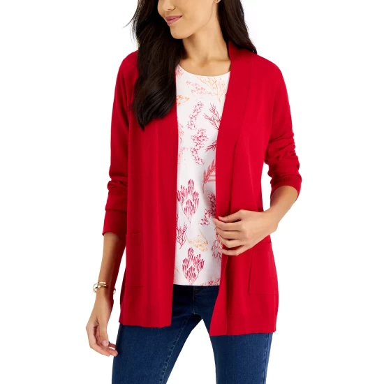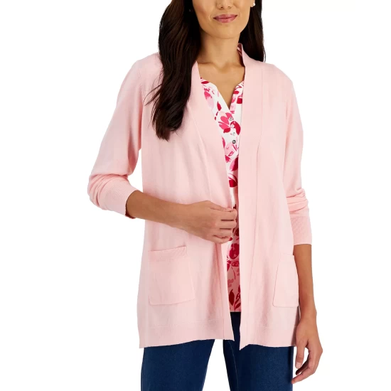 The ultimate warmer at a chilly office, this plus size cardigan from Karen Scott is in breathable cotton and a relaxed fit for a flattering look.