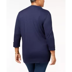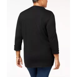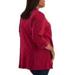 The ultimate warmer at a chilly office, this plus size cardigan from Karen Scott is in breathable cotton and a relaxed fit for a flattering look.