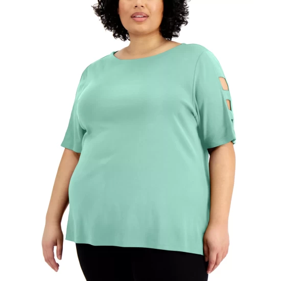 An absolute wardrobe essential crafted from comfortable cotton, Karen Scott’s plus size top features an elegant boat neckline and elbow-length sleeves with unexpected cutouts.
