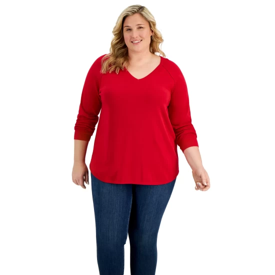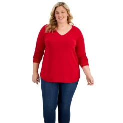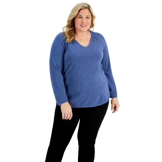 For cool weather days, reach for warm cotton comfort with this plus size sweater from Karen Scott.