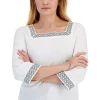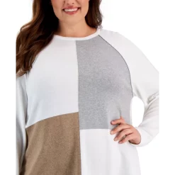 A colorblocked pattern adds interest to the front of this effortless plus size sweater by Karen Scott.