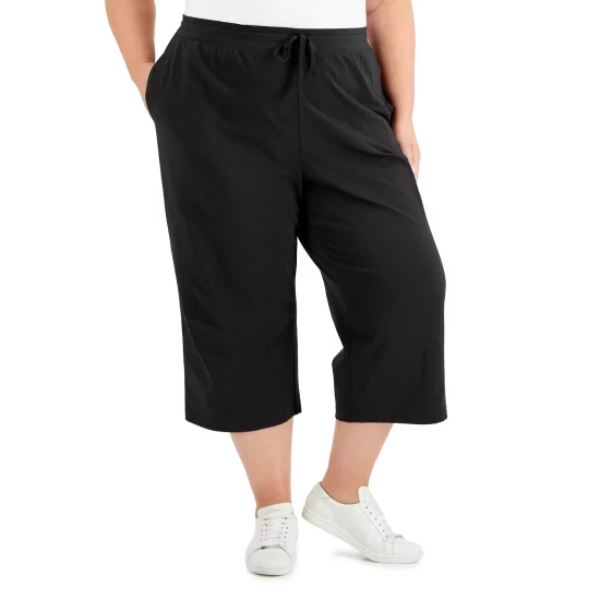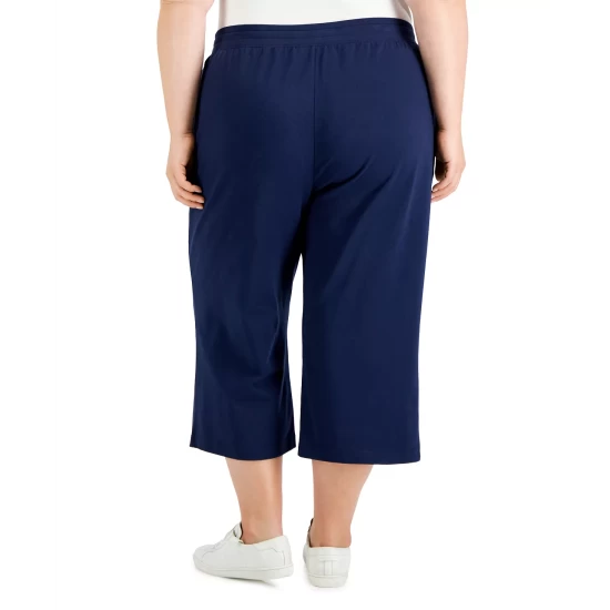 Make yourself comfortable in a pair of plus size knit Capri pants from Karen Scott. The drawstring waist lets you customize the fit.