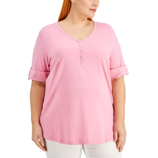 An essential for polished casual looks, this plus size tunic from Karen Scott features a classic Henley-style neckline.