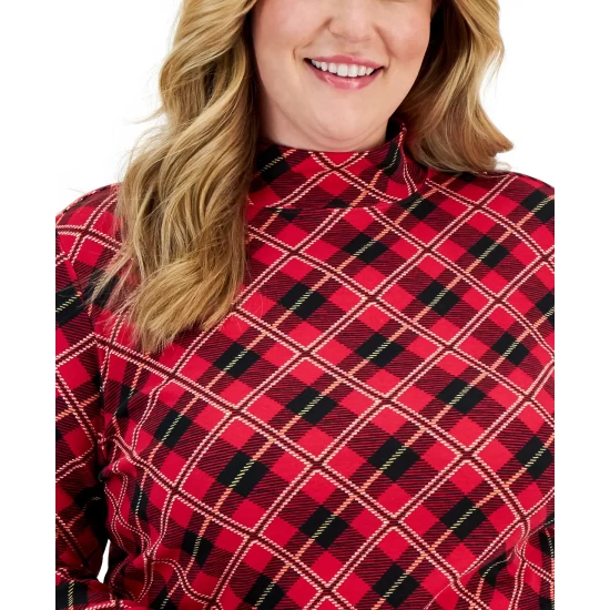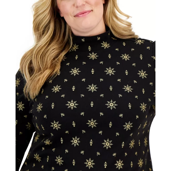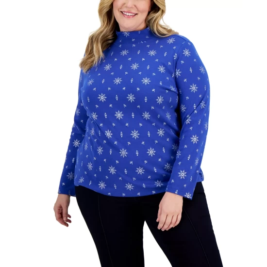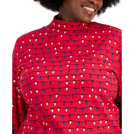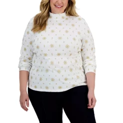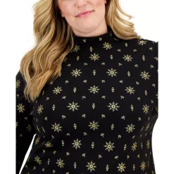 Get your wardrobe ready for the holidays this season with Karen Scott’s plus size top, featuring a mock-neck for layerable style.