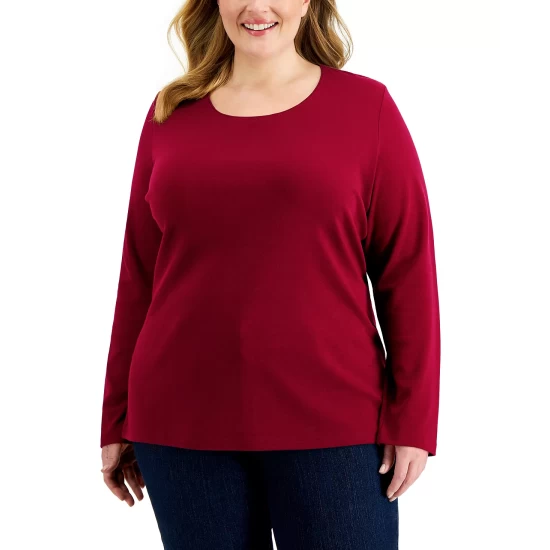 A fashion staple you can style endless ways, this plus size top from Karen Scott features long sleeves, so you can layer it or wear it solo.