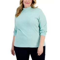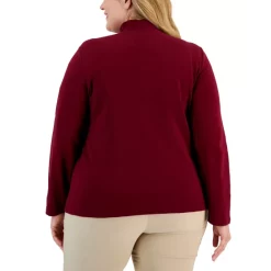 Karen Scott helps you update your casual wardrobe with this plus size knit top designed with a sleek mock turtleneck.