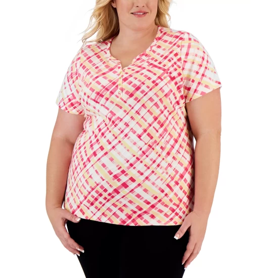 Refresh your weekend look with Karen Scott’s plus size henley T-shirt.