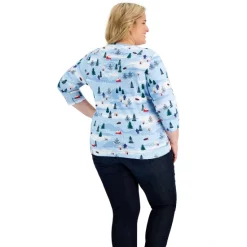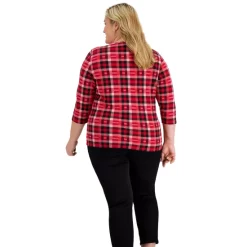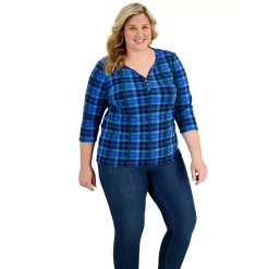 Pretty in plaids, this plus size Henley top from Karen Scott is an ideal cool weather addition to any chic closet.