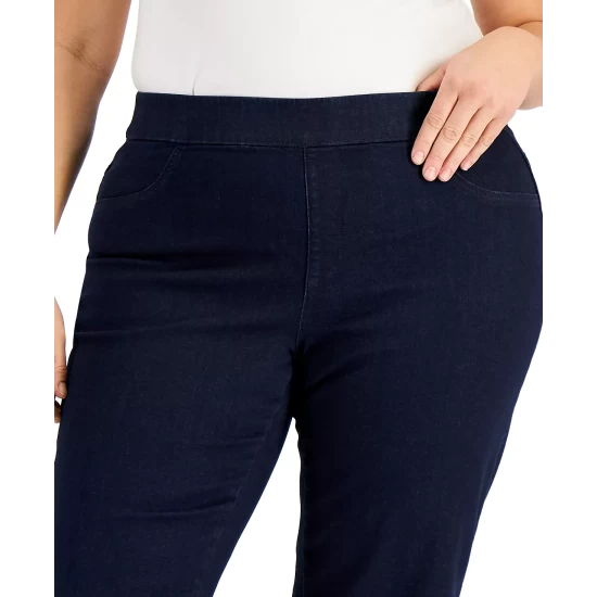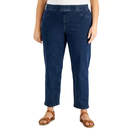 Karen Scott has your denim style covered with these plus size pants designed to pull-on effortlessly with a hint of stretch.