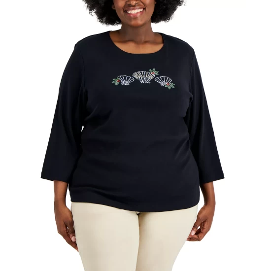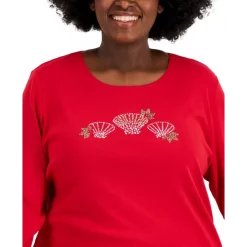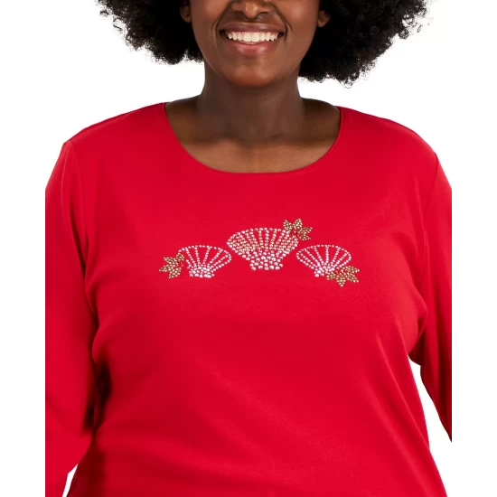 Rhinestones make seashells stand out on this beachy plus size top from Karen Scott.