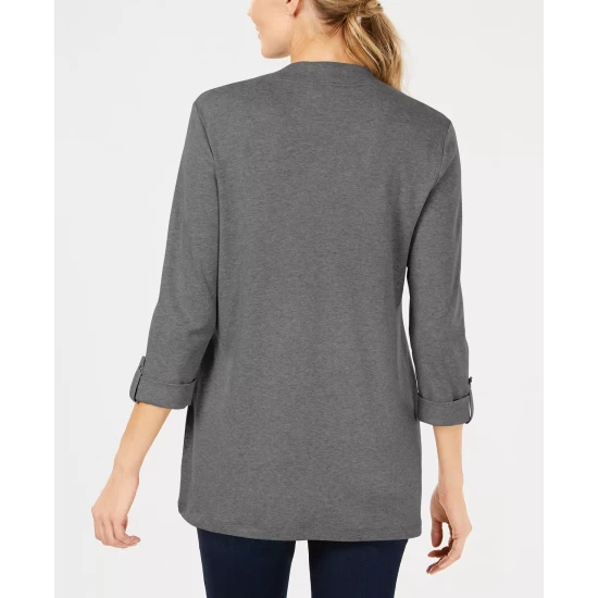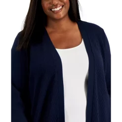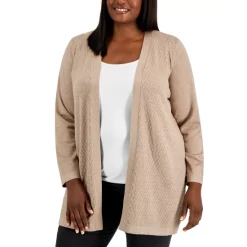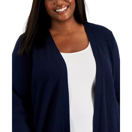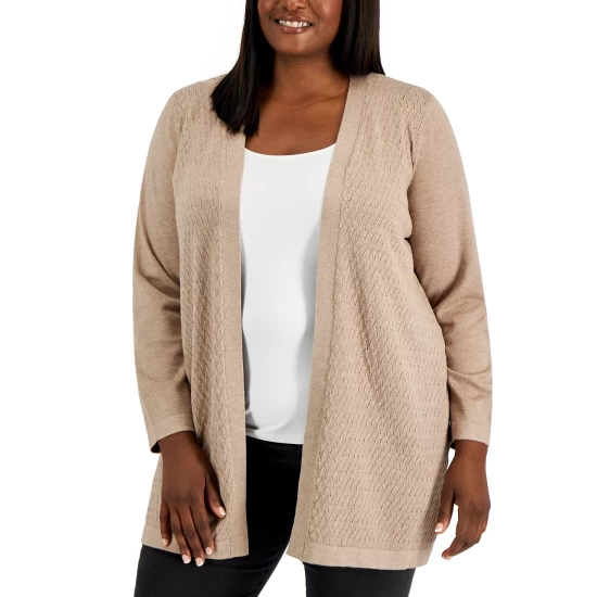 Textured stitching lends stylish interest to this plus size cardigan from Karen Scott, featured with an open front for endless styling options.