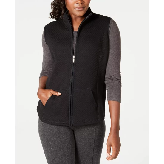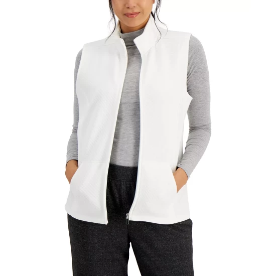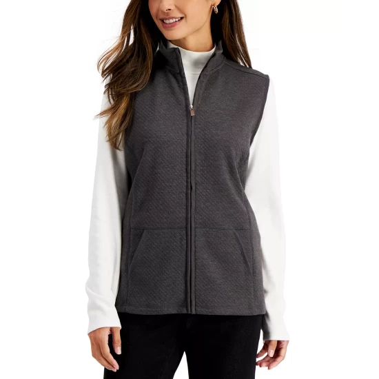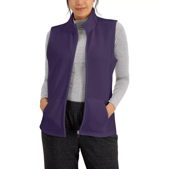 Change up your look with this Karen Scott vest, a relaxed fleece piece with stylish quilting and limitless versatility.