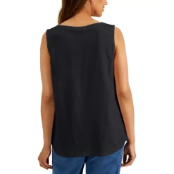 Karen Scott’s sleeveless shell top is easy to dress up with a chic skirt or down with your favorite jeans.