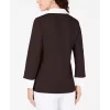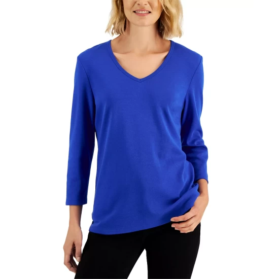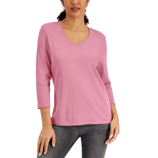 Karen Scott makes pairing easy with this solid top in a 3/4-sleeve relaxed silhouette, finished with a classic V-neck.