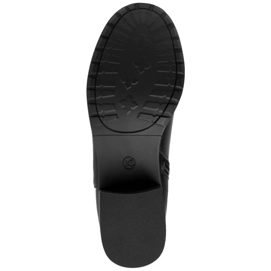 - Almond-toe extended wide-calf riding boots with inner ankle zipper closure